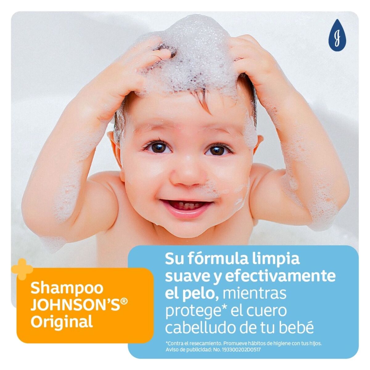 Champú JOHNSON’S Original limpia efectivamente el pelo del bebé y posee una fórmula tan suave para los ojos.