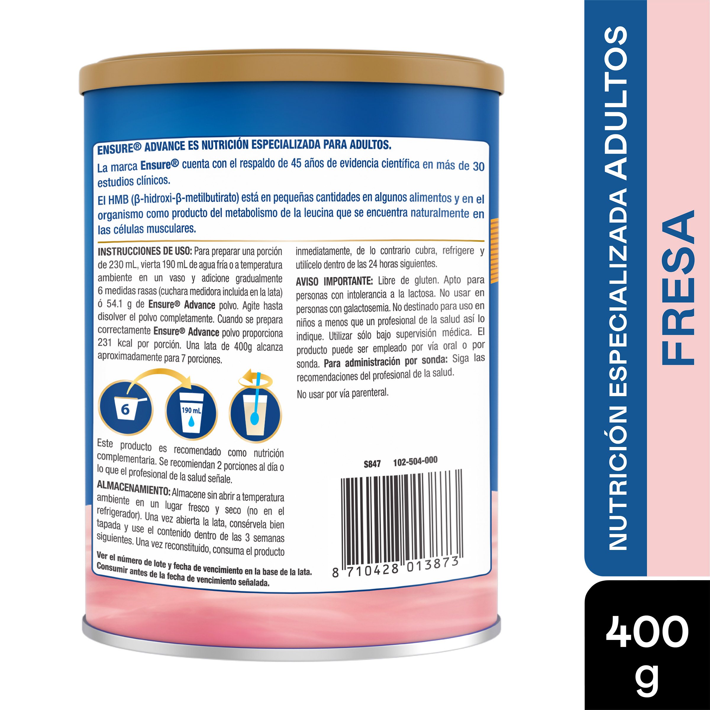Ensure Advance Sabor a Fresa 400 g REGISTRO SANITARIO INVIMA: RSA-004359-2017